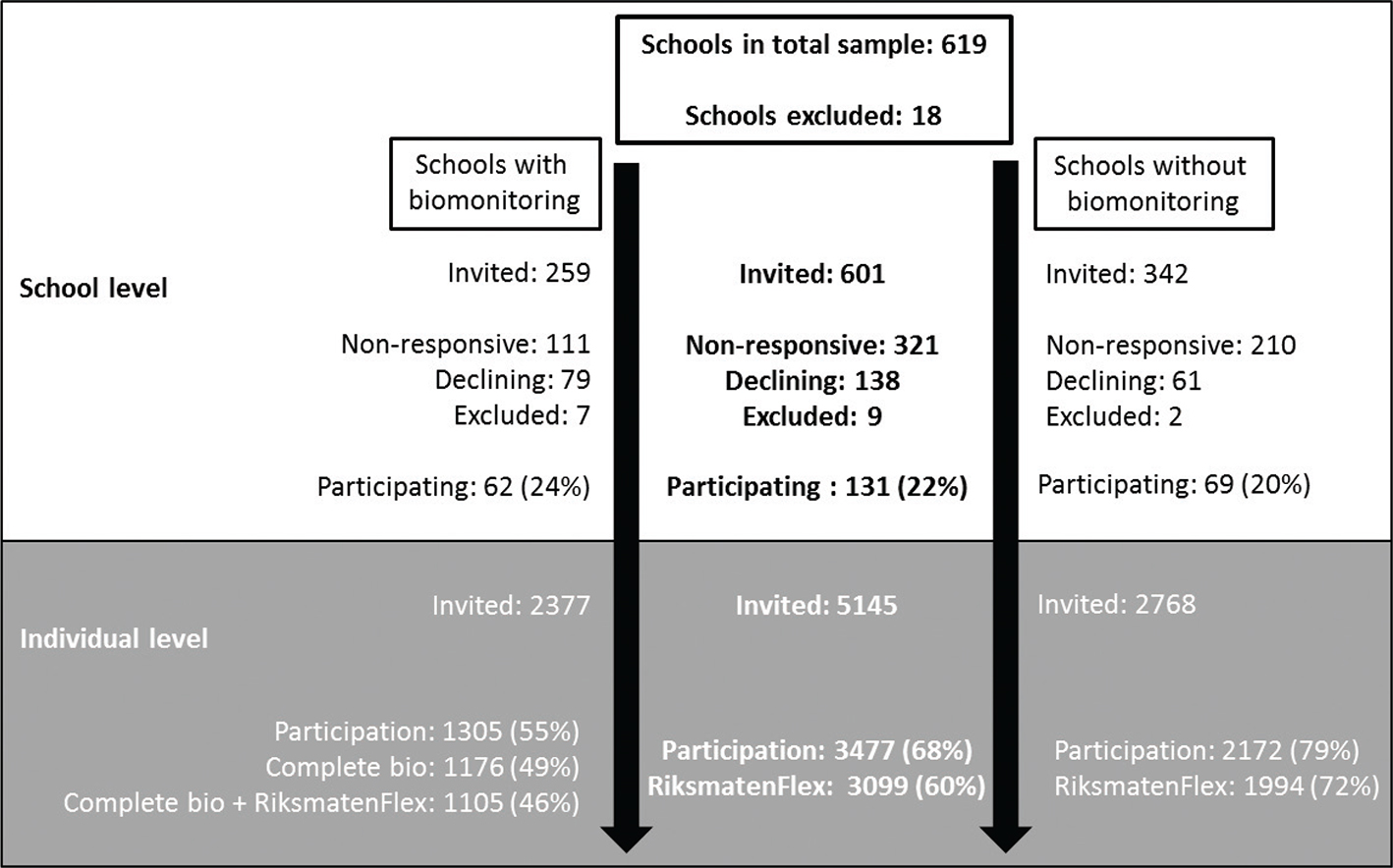 Fig 1. Inclusion process and participation at school and student level. Bio: biological sampling.