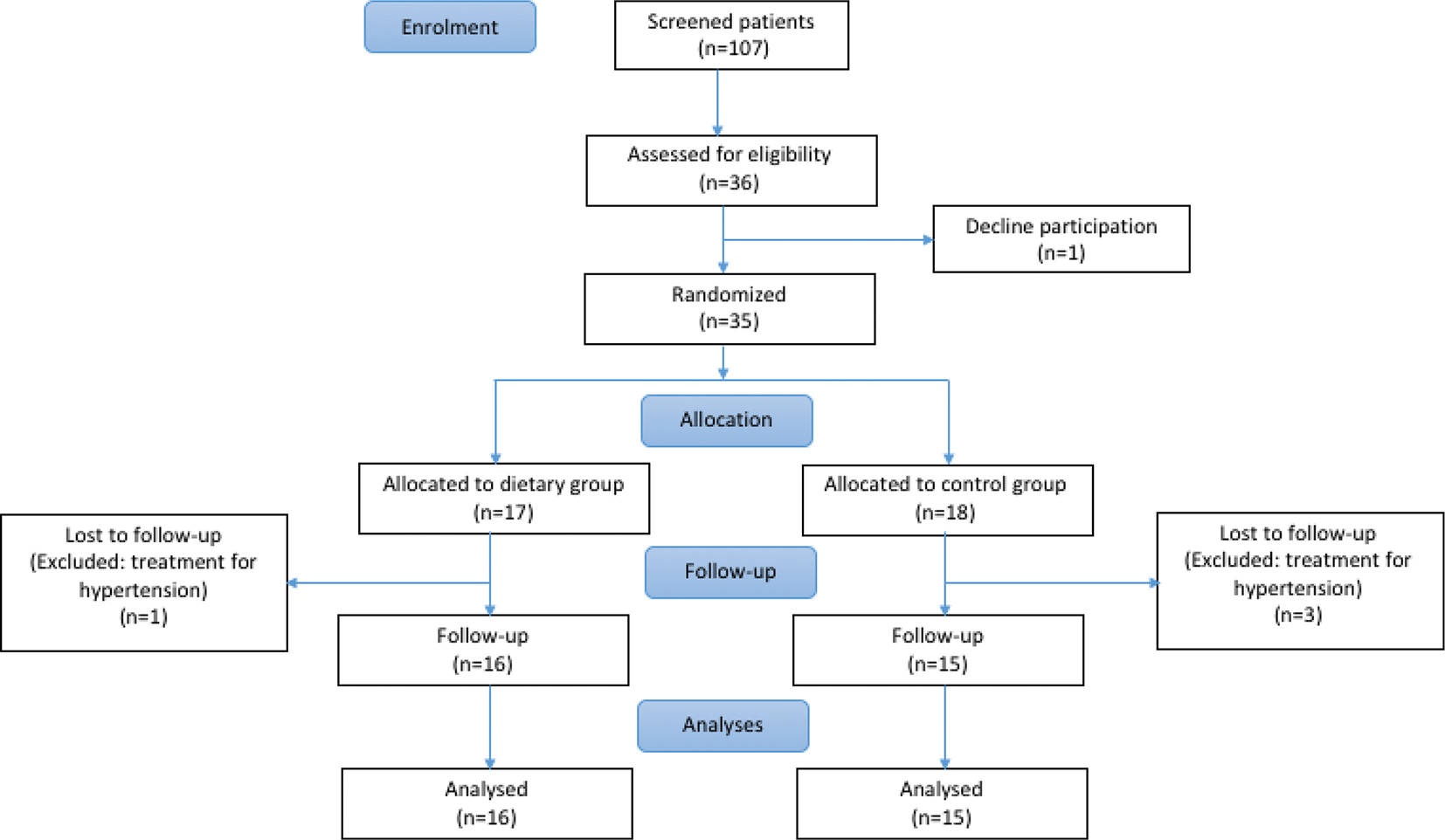 | Baseline characteristics | All patients, n = 31 | Diet group, n = 16 | Control group, n = 15 | p-valuea |