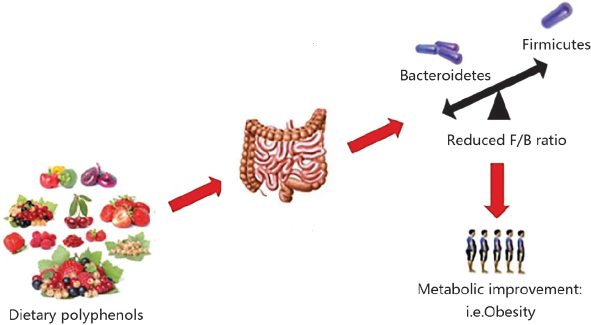 Fig. 3. Dietary polyphenols inhibit the metabolic disease related to obesity by regulating the intestinal microflora ecology, for example, lowering Firmicutes/Bacteroidetes ratio (49, 50).