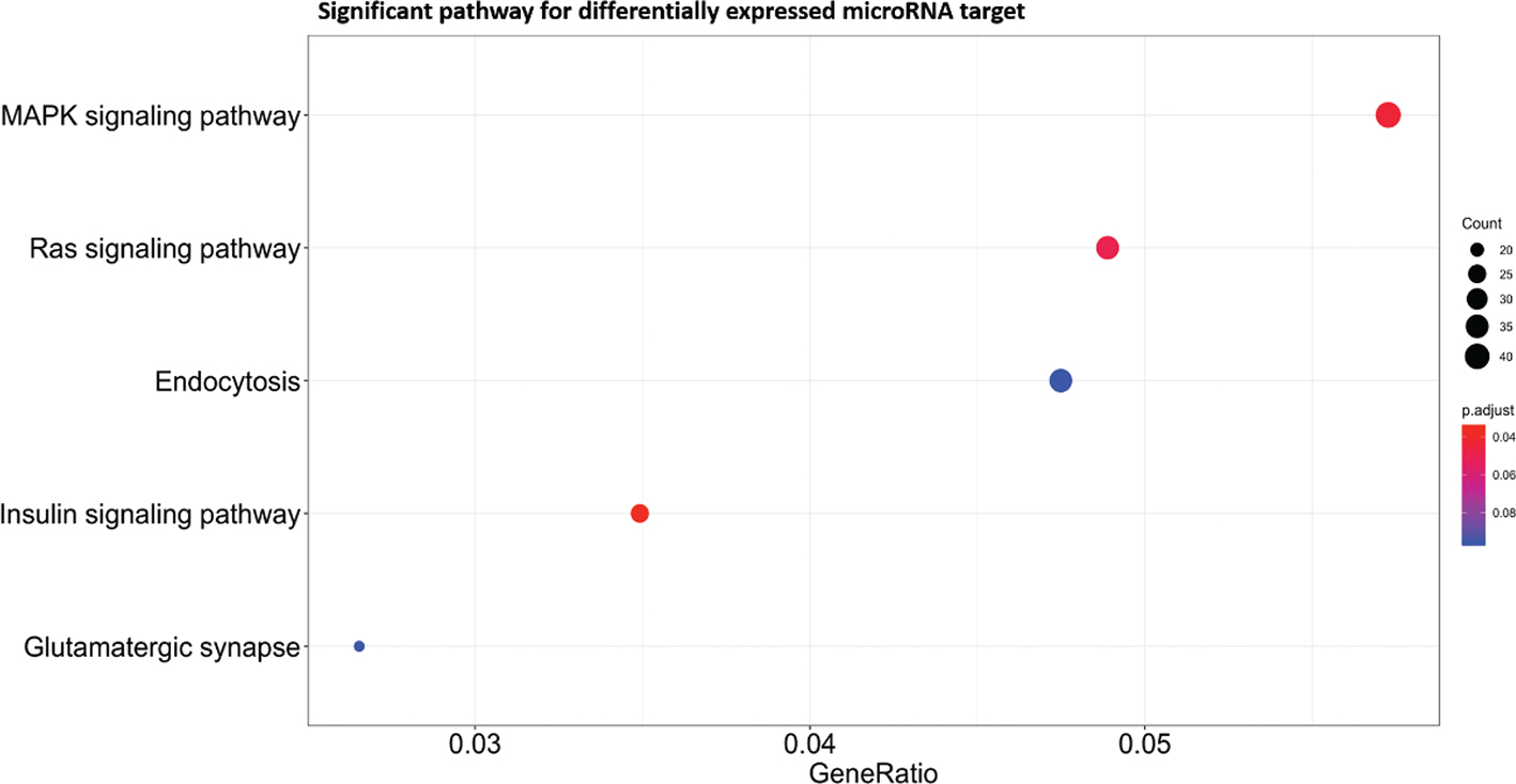 Fig. 3. Significant pathways for the targets of differentially expressed (DE) miRNAs.