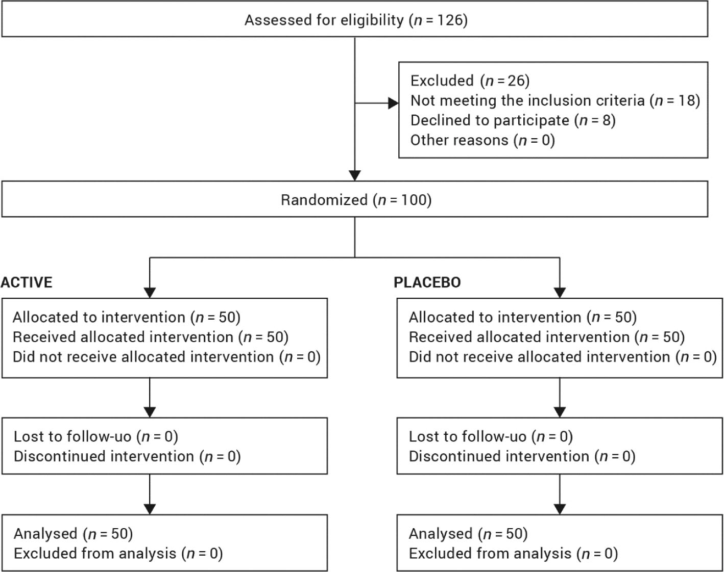 A restricted randomisation list was created using PASS 11 (version 11.0.8; PASS, LLC. Kaysville, UT, USA) statistical software running on Windows Server 2008 R2 Standard SP1 64-bit edition (Microsoft, USA) by a biostatistician and stored in a safe place. The randomisation sequence was stratified using ‘Efron’s biased coin’ algorithm with a 1:1 allocation ratio. The allocation sequence was concealed from the study director in sequentially numbered, opaque and sealed envelopes, reporting the unblinded treatment allocation (based on subject entry number in the study). The A4 sheet reporting the unblinded treatment was folded to render the envelope impermeable to intense light. After acceptance of the subject in the study, the appropriate numbered envelope was opened. An independent technician dispensed either dietary supplement or placebo products according to the card inside the envelope. The study adhered to established procedures to maintain separation between the investigator and its collaborators and the staff that delivered the intervention. Staff who delivered the intervention did not take outcome measurements. Subjects, investigators and collaborators were kept masked to product assignment. The dietary supplement and placebo products were in capsule form and identical in appearance. They were pre-packed in blisters and consecutively numbered for each subject according to the randomisation schedule. Each subject was assigned an order number and received the capsules in the corresponding pre-packed blister.